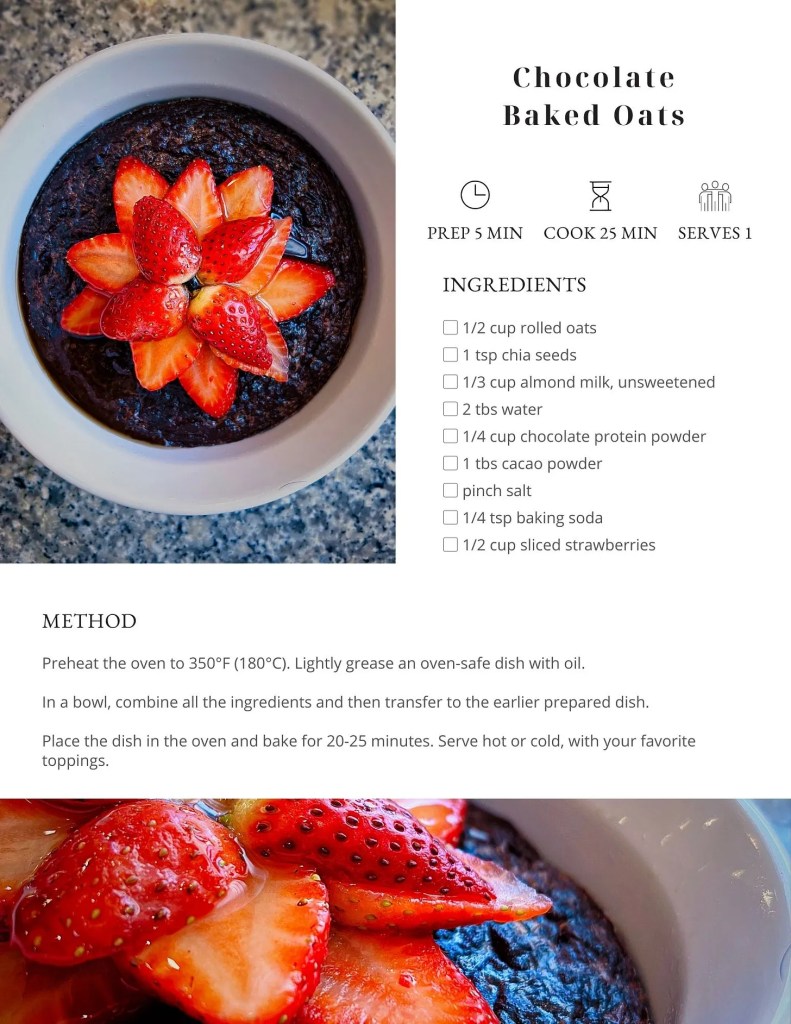 Time to level up your breakfast game with something absolutely delicious! Say hello to Chocolate Baked Oats! This no-fuss, easy recipe is the morning miracle you’ve been waiting for, packed with protein and fiber. Enjoy a delectable dessert-like breakfast while nourishing your body. How’s that for having your cake and eating it too? (ps, you can eat cake any time, but for breakfast it might not sit that well, ya know?)